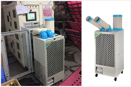 公司机械设备降温方式采用的是公司的移动工业冷气机,出风口16-18摄氏度的低温,能够迅速有效的缓解机械设备的发热发烫问题,保证机械设备安全稳定运行的同时,公司工业冷气机还具有除湿、送新风功能,有利于改善车间整体环境,可谓是一举多用的好帮手。