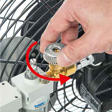 使用空气压缩机所制造的压缩机空气驱动马达,带动风扇运转。